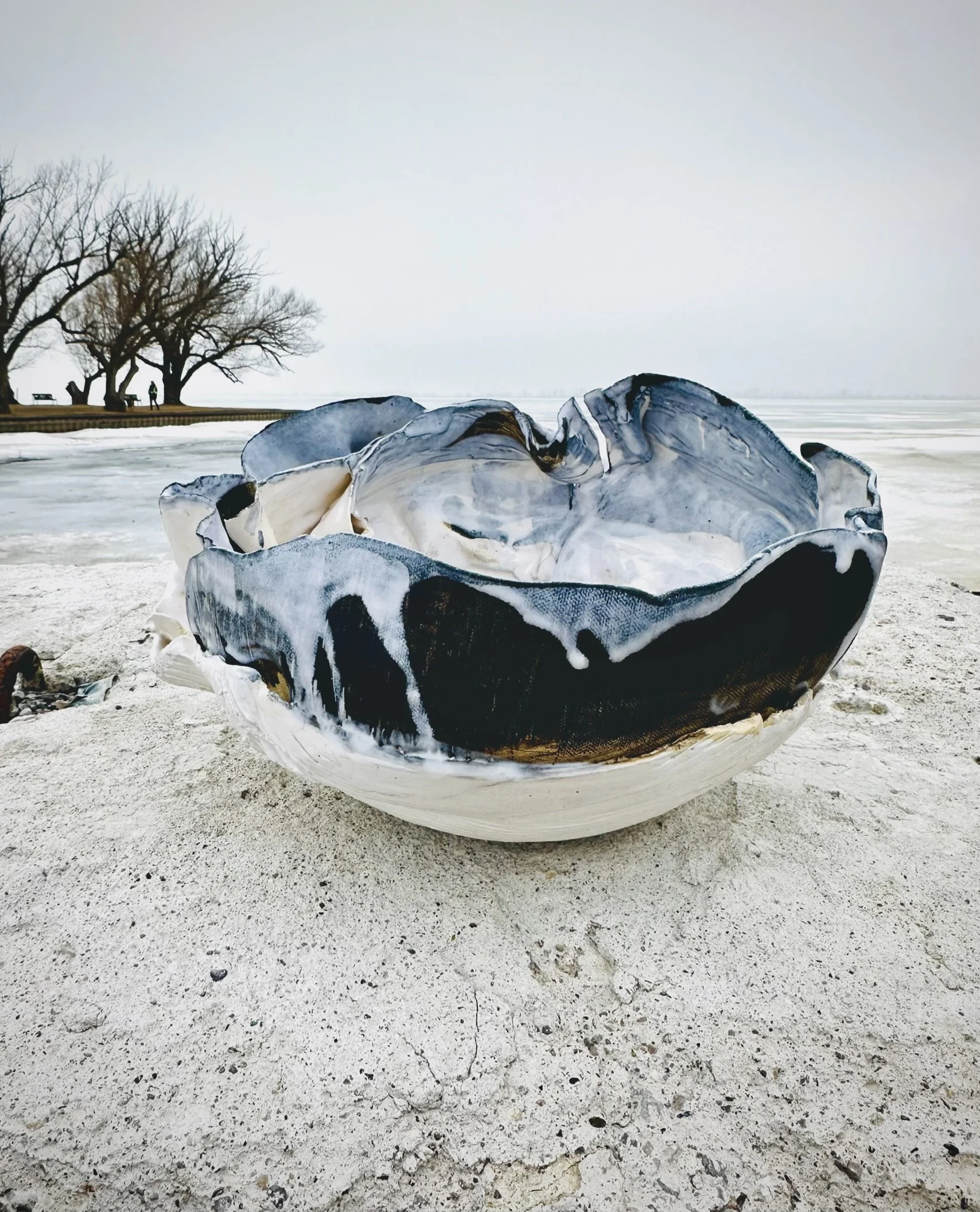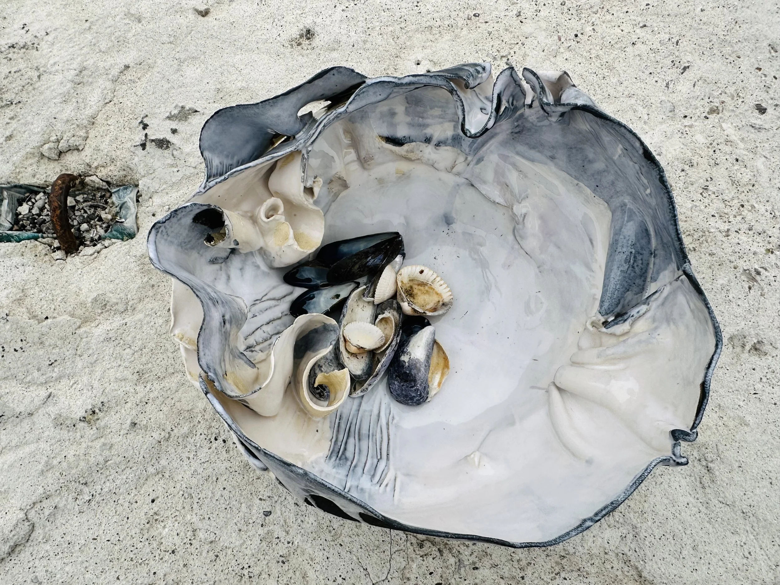 This fascination manifest in a series of vessels and boat like forms that serve as metaphors for passage, containment, and the undulating movement of the sea. These works, do not just represent water; they embody its characteristic flow through sagging rims, sweeping curves, and surfaces that appear to ripple under the light. By bridging the gap between the skeletal structure of drawing and heavy presence of clay,